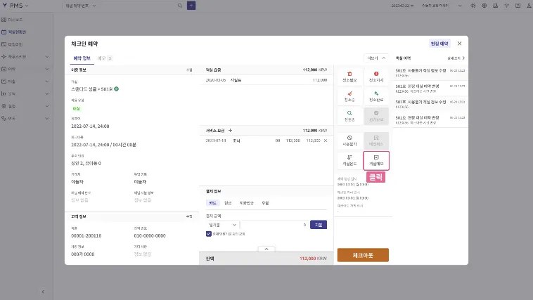 객실카드를 클릭하면 예약 상세 화면으로 이동할 수 있습니다.