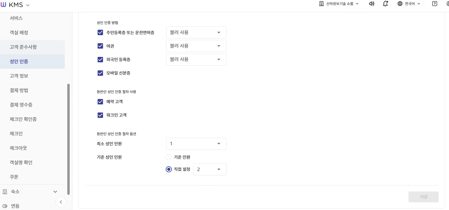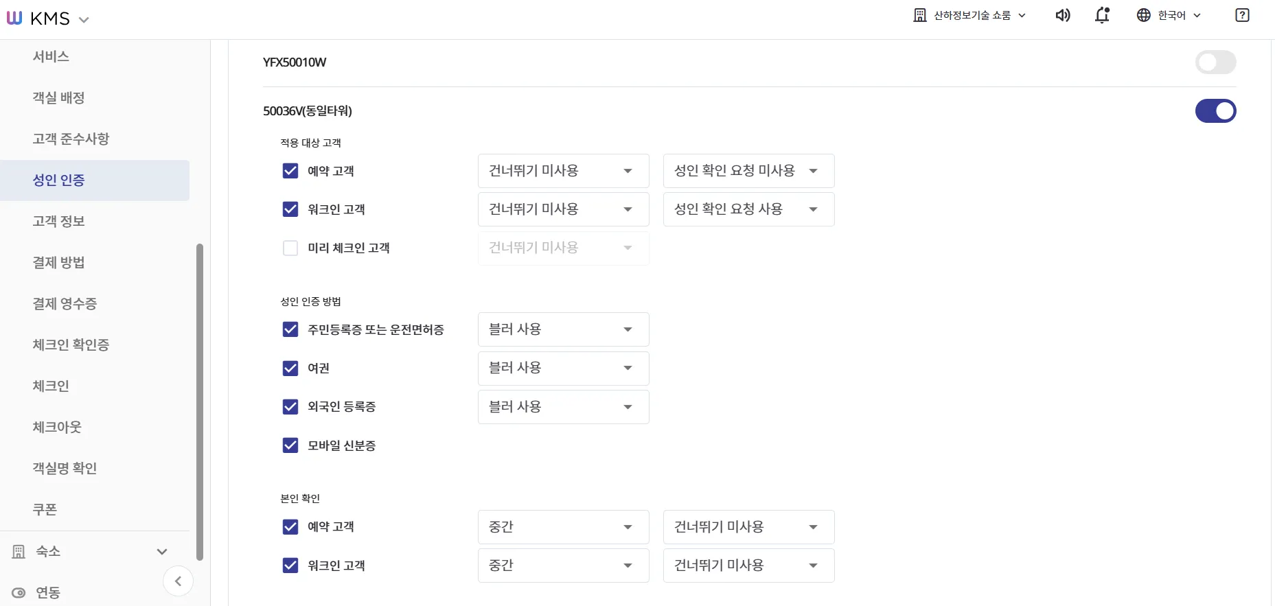 키오스크별로 성인 인증 절차 사용 여부를 설정할 수 있습니다.