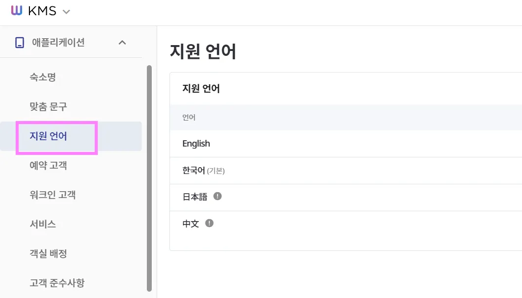 키오스크에서 사용될 지원 언어를 설정할 수 있습니다.