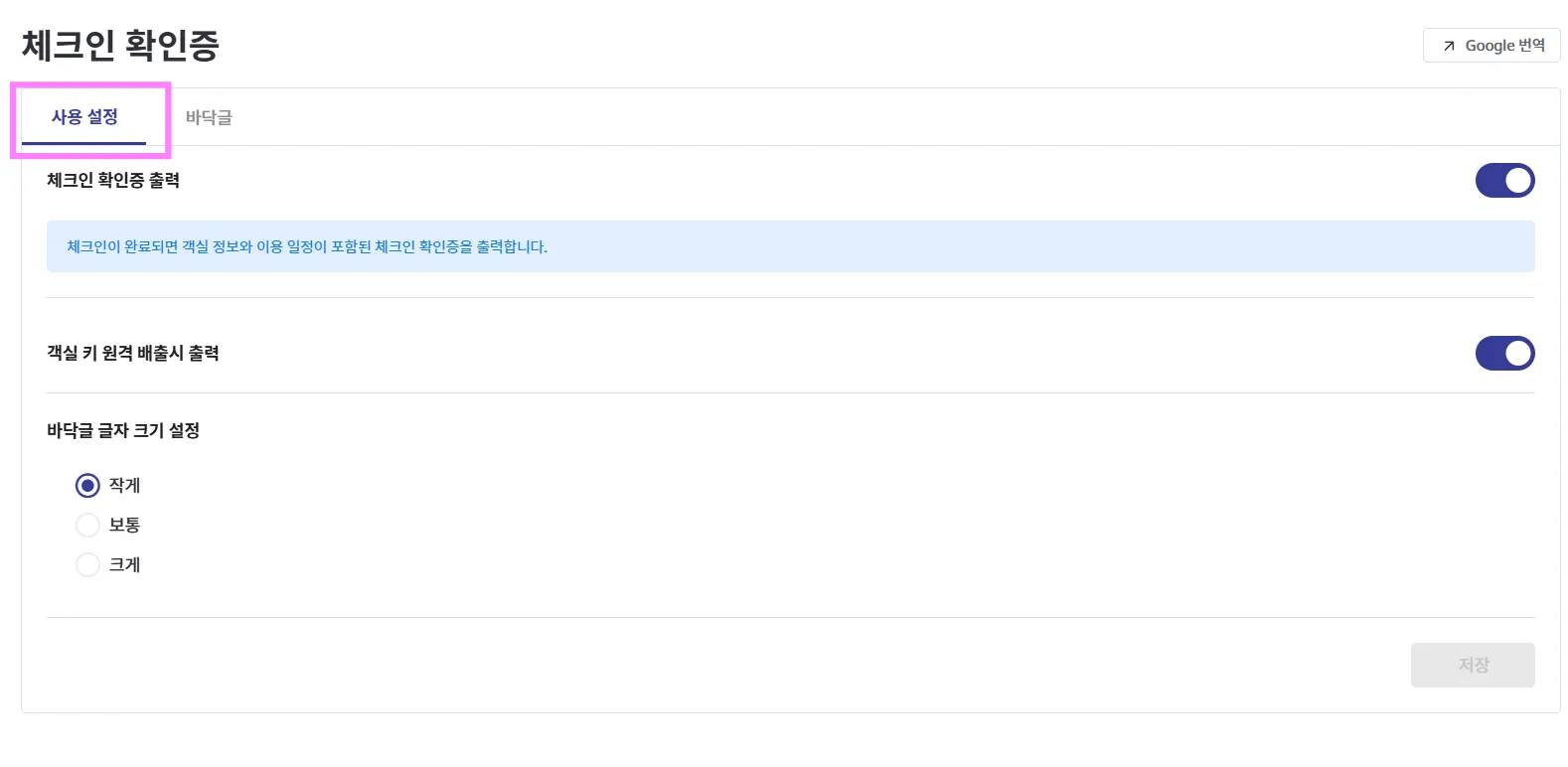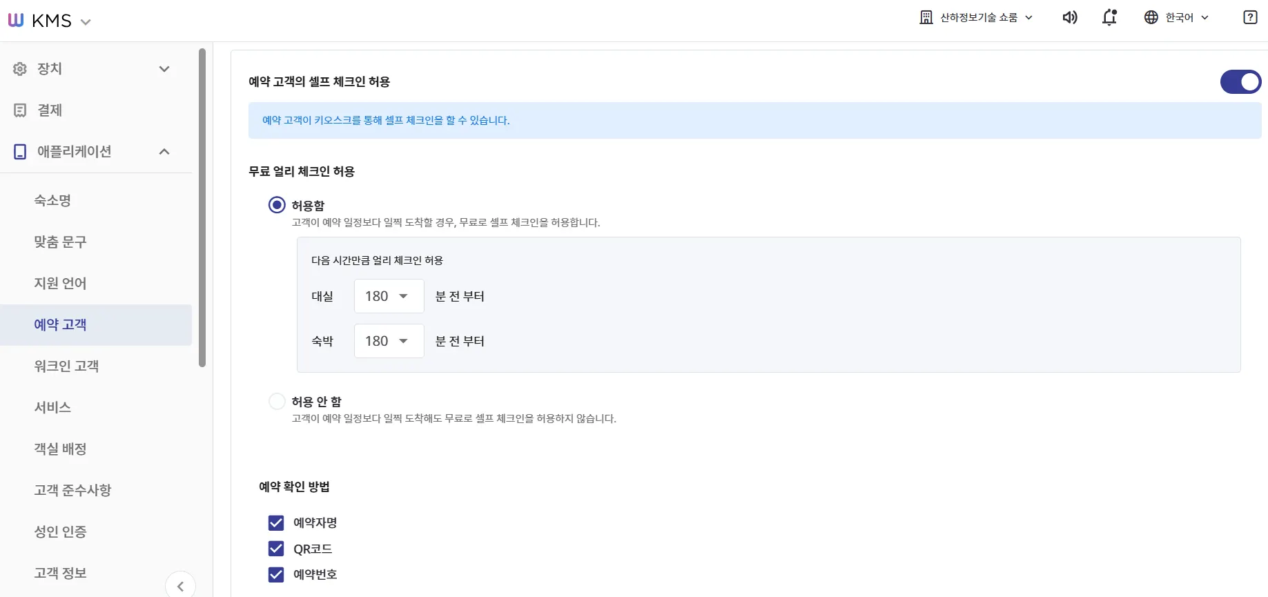 예약 고객의 셀프 체크인을 허용할 지 여부를 설정할 수 있습니다.