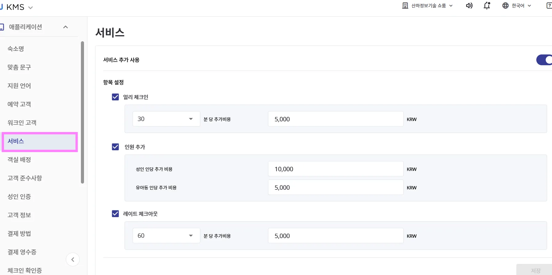 예약 고객의 체크인 관련 설정을 할 수 있습니다.