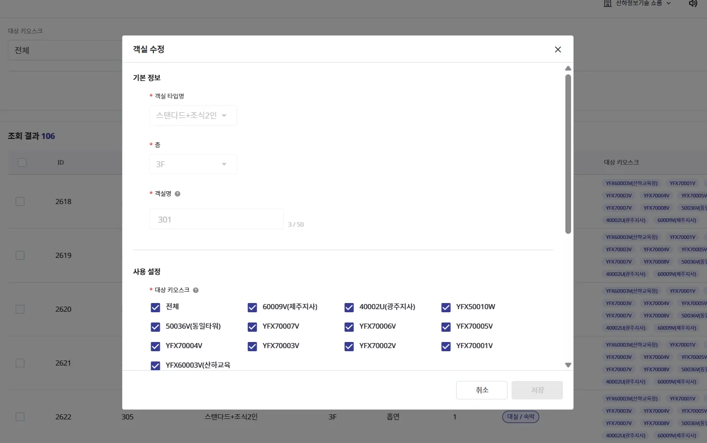 키오스크에 사용될 객실 정보를 수정하실 수 있습니다.
